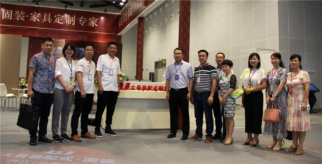 上圖為廣西建筑裝飾協(xié)會(huì)會(huì)長(zhǎng)龐耀國(guó)等一行前往華輝展廳參觀指導(dǎo)