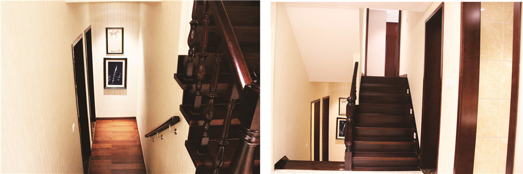 過道:樓梯及扶手均為實(shí)木材質(zhì),與過道木地板相協(xié)調(diào),演繹奢華別致的錯(cuò)層風(fēng)格。