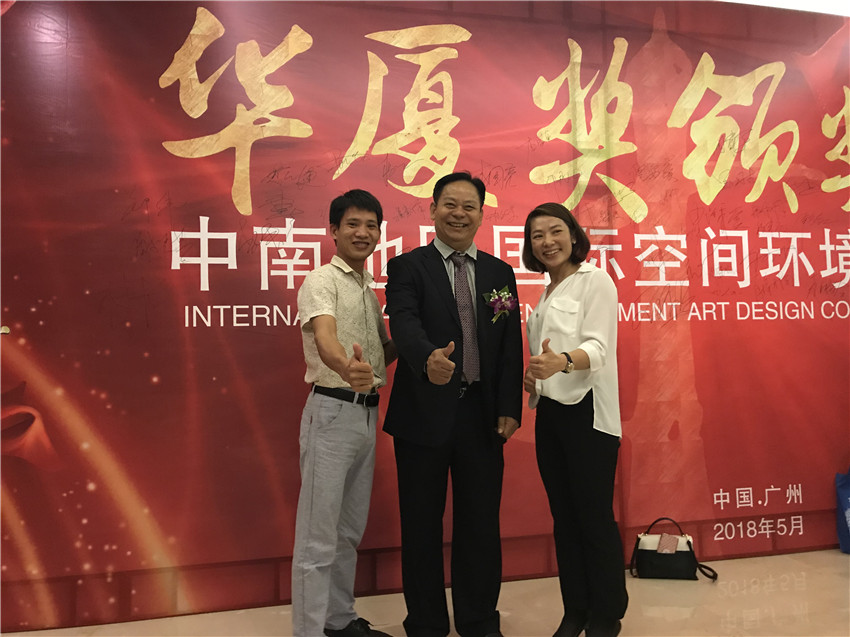 ▲華輝獲獎(jiǎng)設(shè)計(jì)師與廣州市建筑裝飾協(xié)會(huì)會(huì)長、本次大賽組委會(huì)主任倪安葵(中)合影