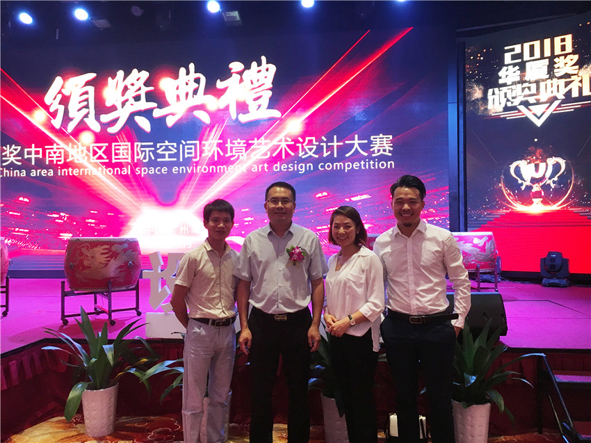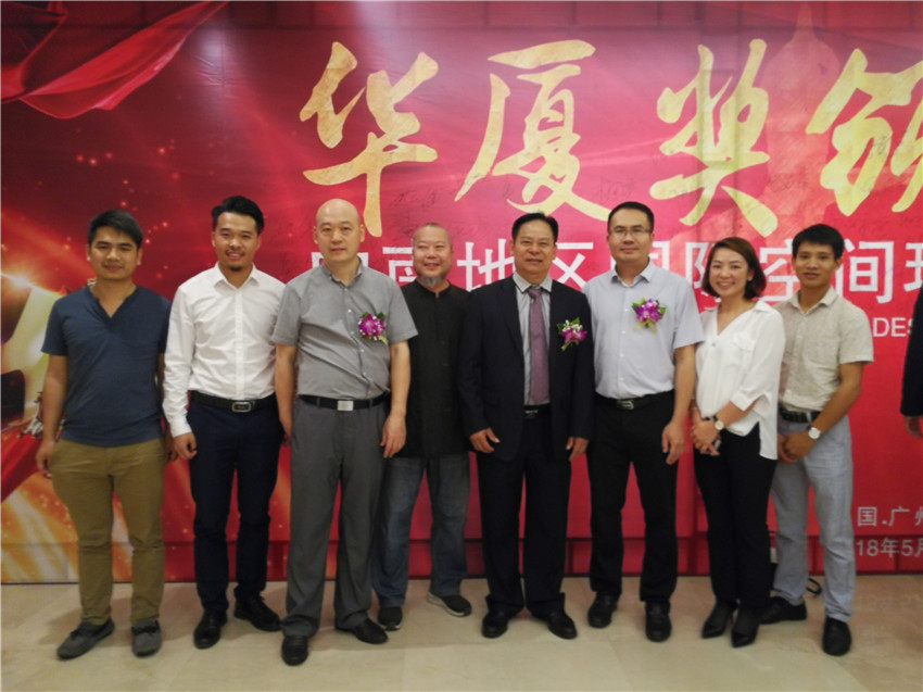 ▲華輝獲獎(jiǎng)設(shè)計(jì)師與廣西建筑裝飾協(xié)會(huì)龐耀國會(huì)長(左二)合影