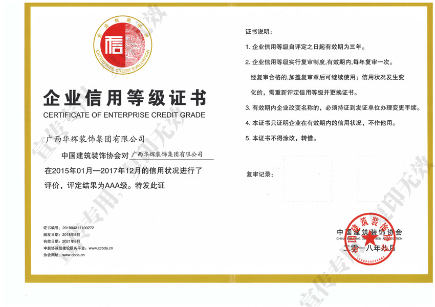 ▲全國建筑裝飾行業(yè)AAA信用企業(yè)