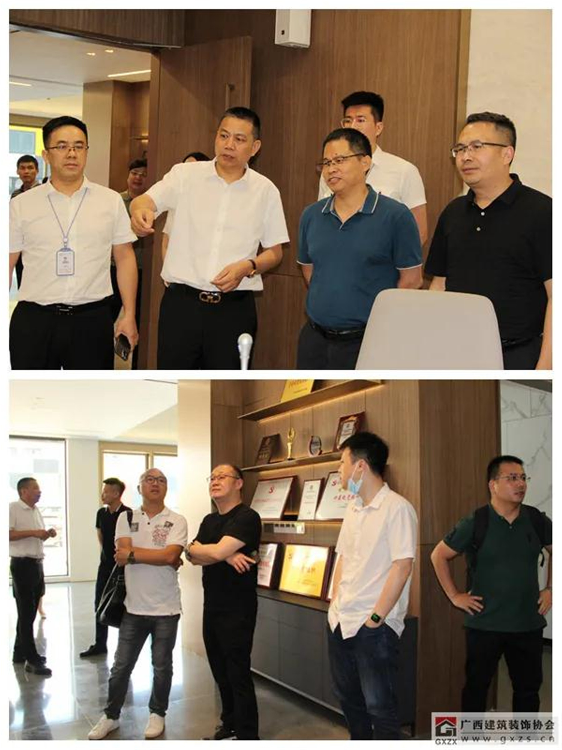 會(huì)后,參會(huì)嘉賓在楊景忠董事長(zhǎng)的帶領(lǐng)下,參觀了廣西華輝裝飾集團(tuán)有限公司新改造升級(jí)的辦公場(chǎng)地以及裝配式工廠化生產(chǎn)基地。