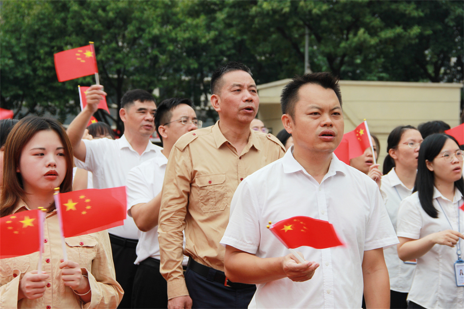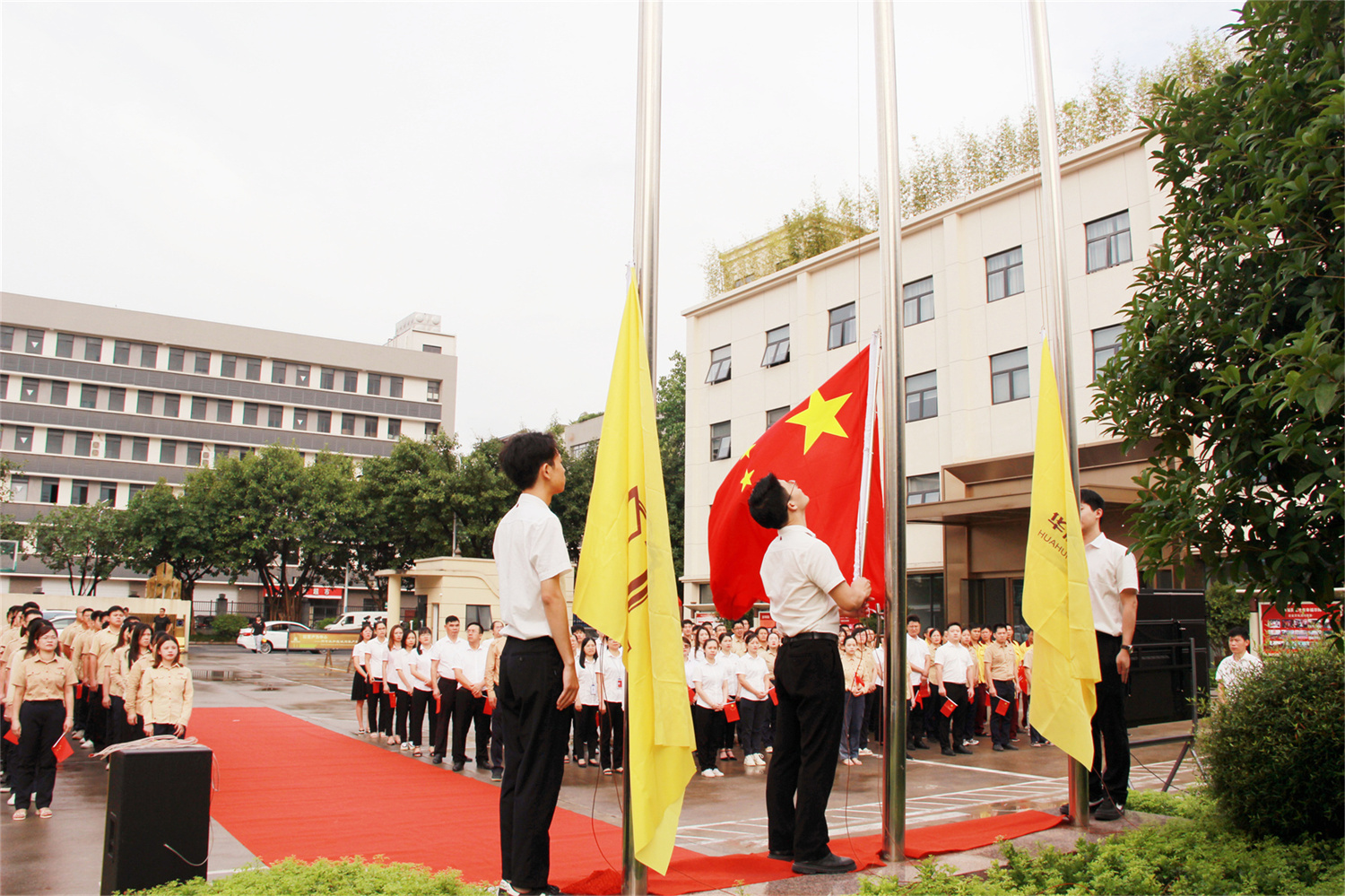 上午8點(diǎn),華輝人匯聚集團(tuán)總部操場整齊列隊(duì),在蓬勃的朝陽下,鮮艷的五星紅旗在激昂雄壯的國歌聲中冉冉升起、迎風(fēng)飄揚(yáng),全體華輝人肅立注目,齊唱國歌,向偉大的祖國致以最崇高的敬意和深深祝福。