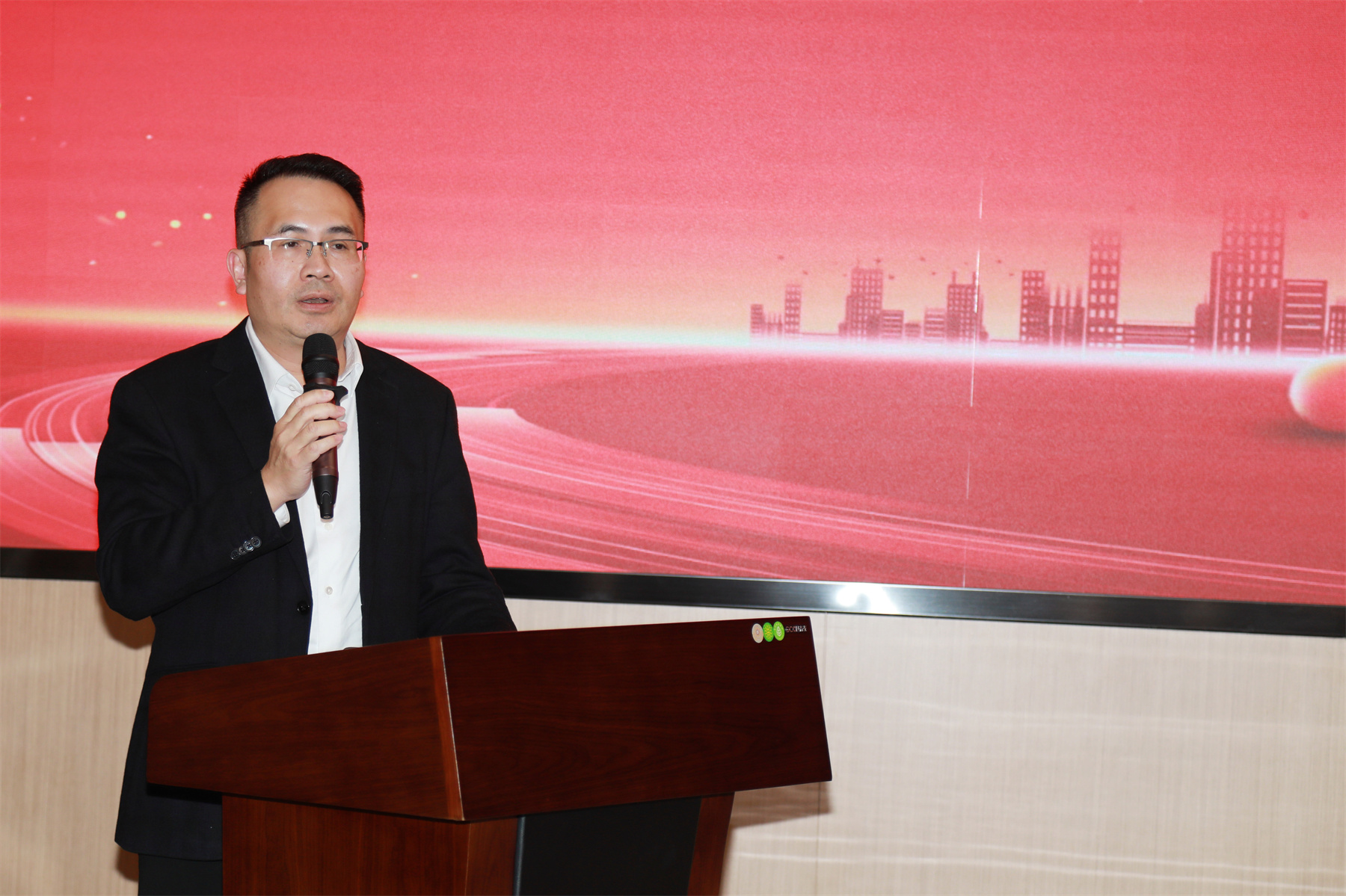 ▲廣西建筑裝飾協(xié)會會長龐耀國在會上做總結(jié)發(fā)言