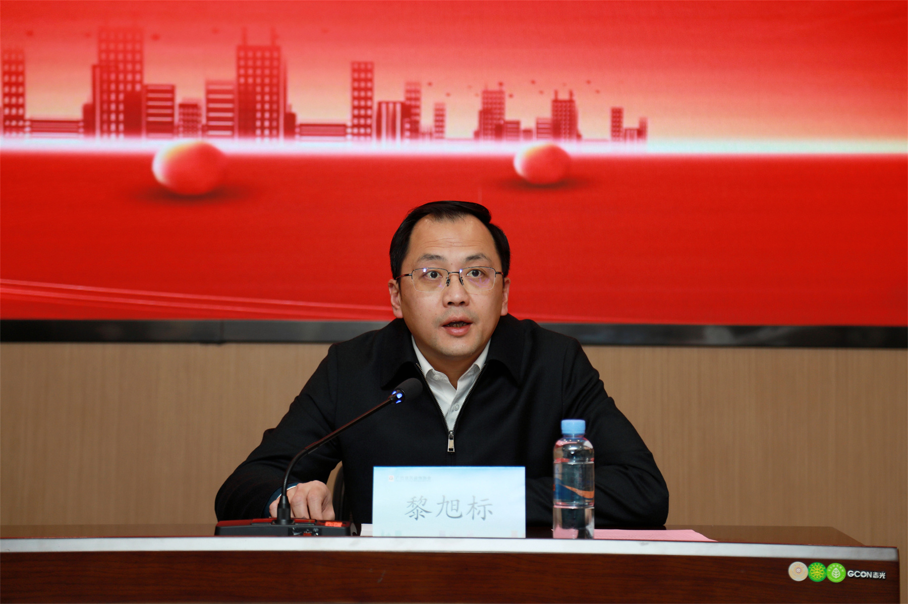 ▲廣西住建廳建管處處長黎旭標在會上致辭