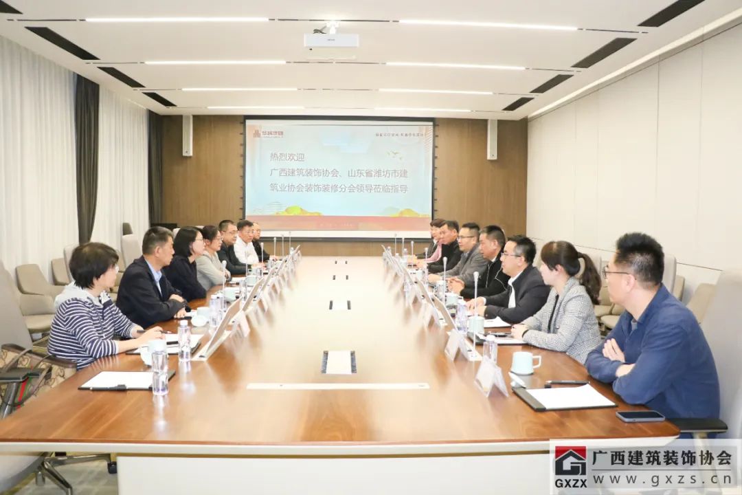 在與山東省濰坊市建筑業(yè)協(xié)會裝飾裝修分會一行的座談會上,廣西建筑裝飾協(xié)會副會長、華輝裝飾董事長楊景忠向濰坊市協(xié)會一行詳細(xì)介紹了華輝裝飾在企業(yè)管理、人才培養(yǎng)、創(chuàng)新機(jī)制方面的經(jīng)驗,雙方企業(yè)就裝配式裝修在兩地的發(fā)展情況和前景相互探討。隨后,華輝裝飾副總裁覃祖榮帶領(lǐng)參觀了華輝裝飾辦公大樓以及工廠,重點介紹了華輝裝飾在裝配式裝修工藝技術(shù)的發(fā)展應(yīng)用。