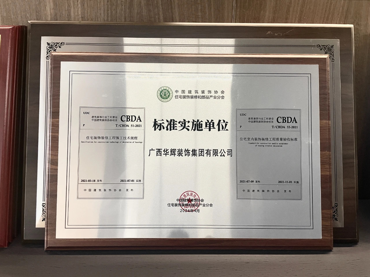 廣西華輝裝飾集團(tuán)憑借卓越實(shí)力和服務(wù)品質(zhì),榮獲【家裝標(biāo)準(zhǔn)實(shí)施單位】稱號(hào)。這不僅是對(duì)華輝集團(tuán)設(shè)計(jì)實(shí)力、工程標(biāo)準(zhǔn)、服務(wù)質(zhì)量的肯定,更是對(duì)華輝在推動(dòng)行業(yè)規(guī)范化、標(biāo)準(zhǔn)化發(fā)展中所作貢獻(xiàn)的認(rèn)可。