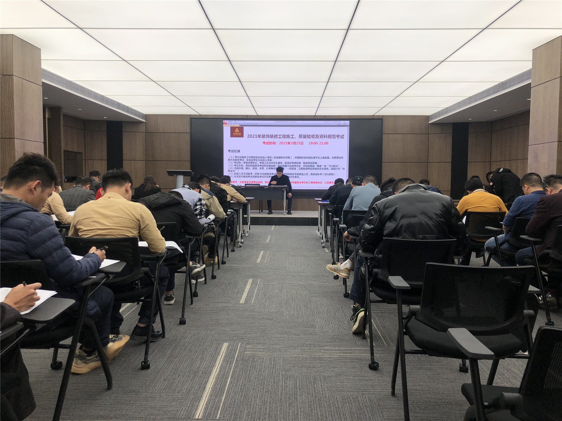 2021年3月25日,華輝集團(tuán)開展第二批裝飾裝修施工、質(zhì)量驗(yàn)收及資料規(guī)范考試,進(jìn)一步推動集團(tuán)裝飾工程標(biāo)準(zhǔn)化建設(shè),確保項(xiàng)目管理人員深入了解和掌握工程管理標(biāo)準(zhǔn)化要求。
